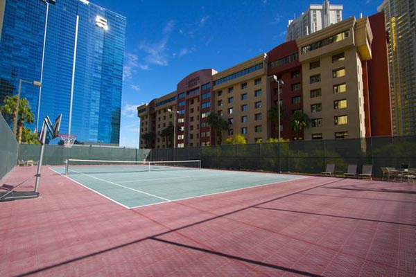 - Fitness center, heated outdoor pool and spa, tennis courts, and basketball court at resort